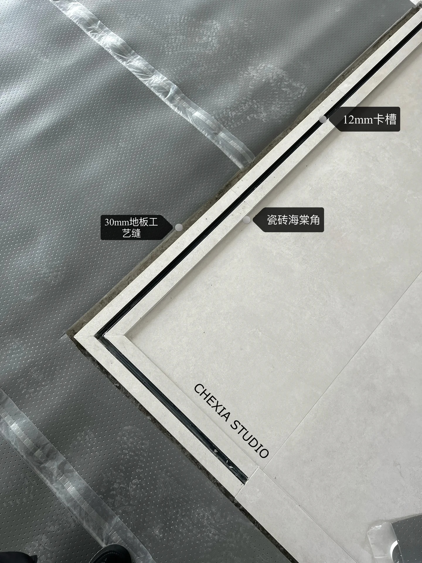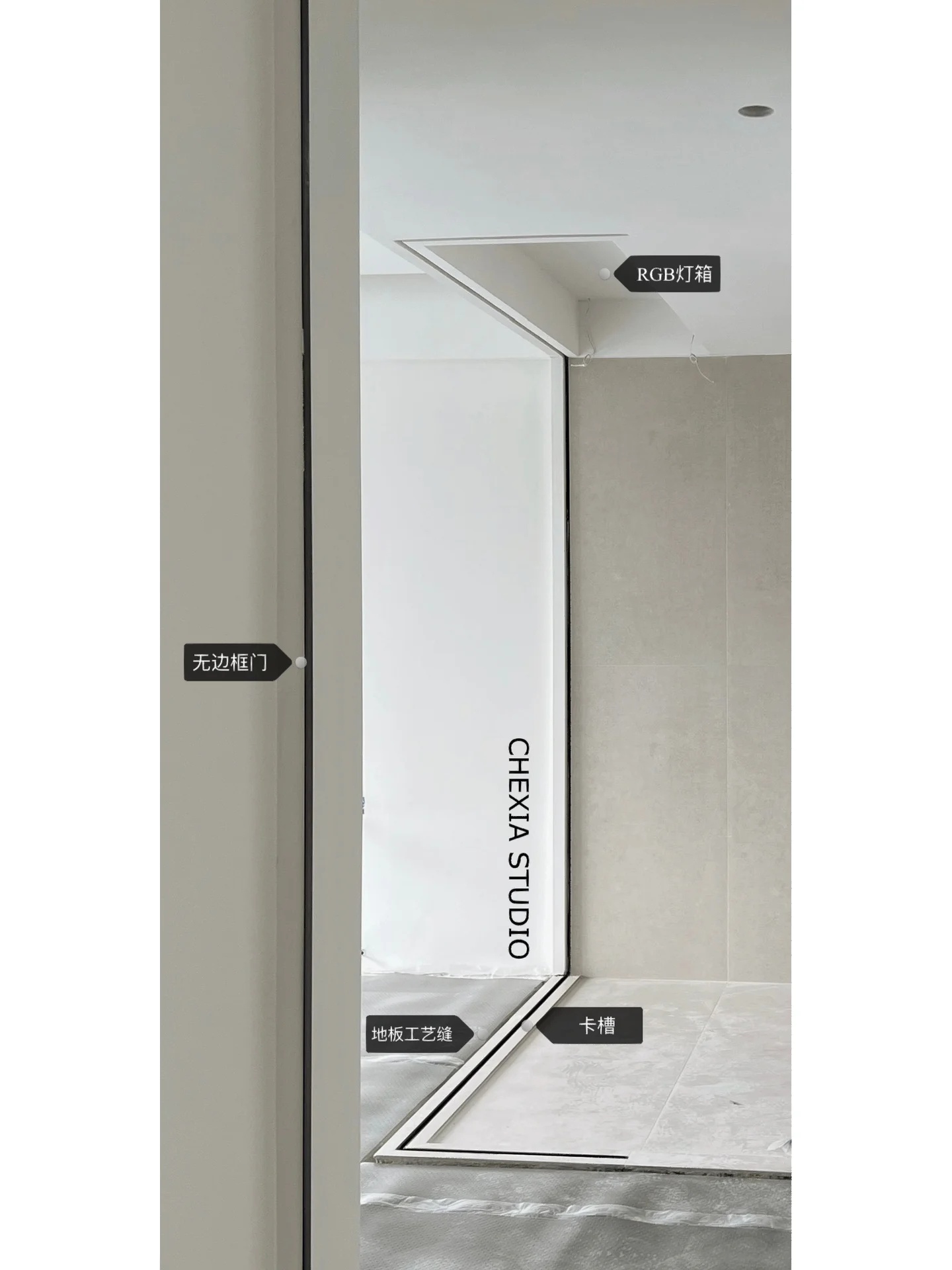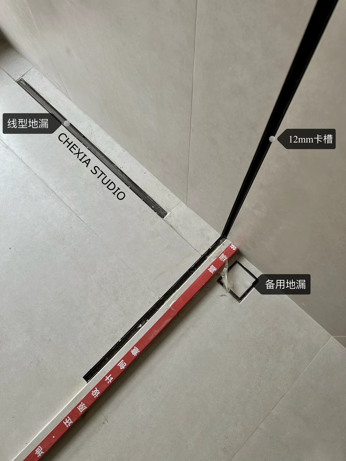 施工中的小细节图一二:雾化玻璃卡槽,顶上rgb灯膜,洗手间无淋浴,有浴缸,后期会放绿植做景图三:玻璃卡槽,线型地漏,为什么没有放在上面,干区是平面,更容易积水,有淋浴,所以放在下面更容易排水的区域,淋浴区做下沉,地漏再次做返水坡图四:儿童床带爬梯滑梯,半成品图六:做30mm的卡槽是防止有的卡条高度和地板不吻合,有调节空间。地坪找平加伸缩缝会减少开裂几率,很实用