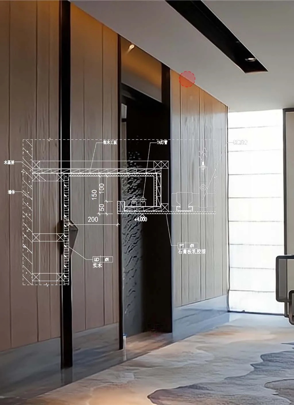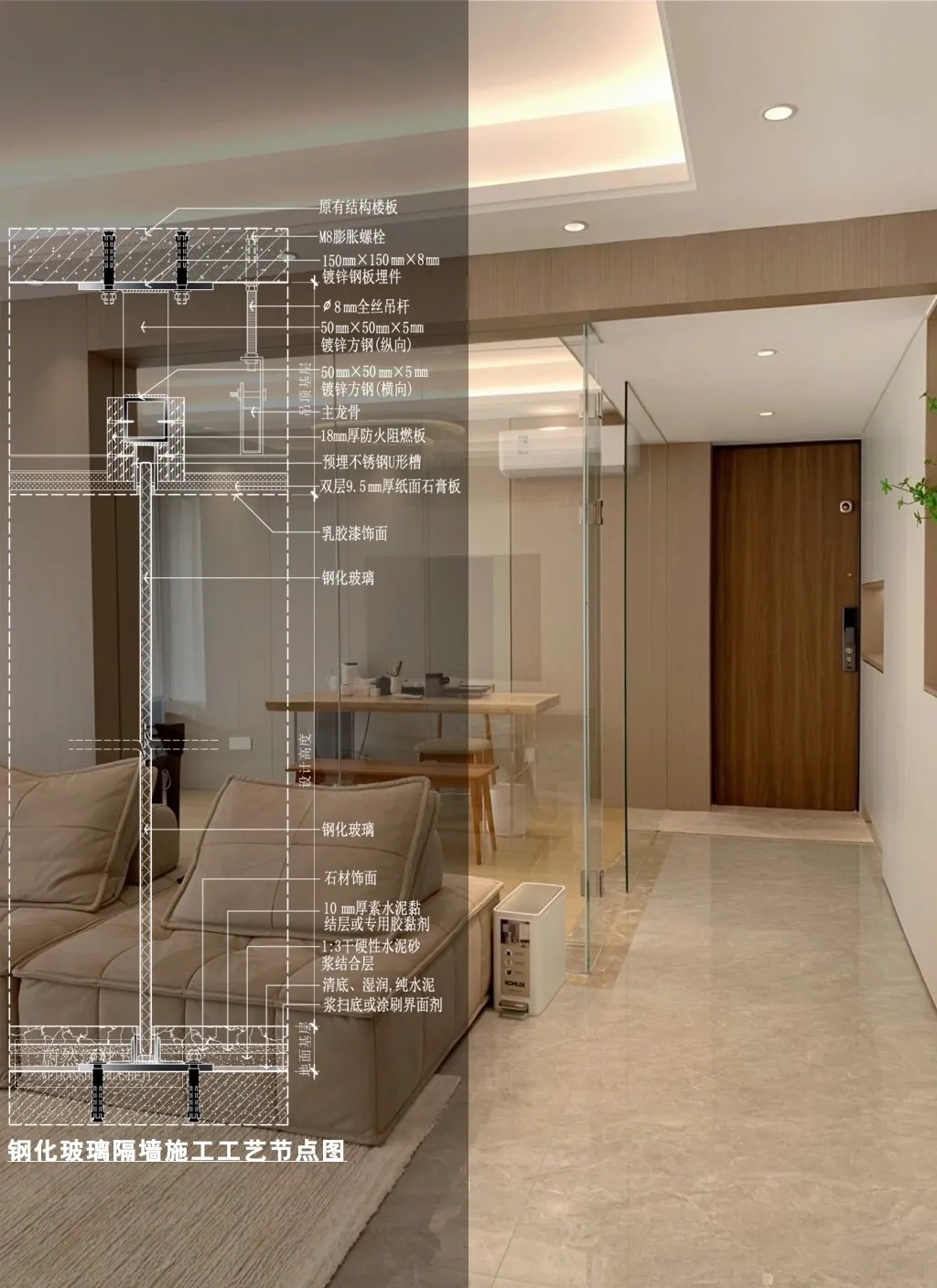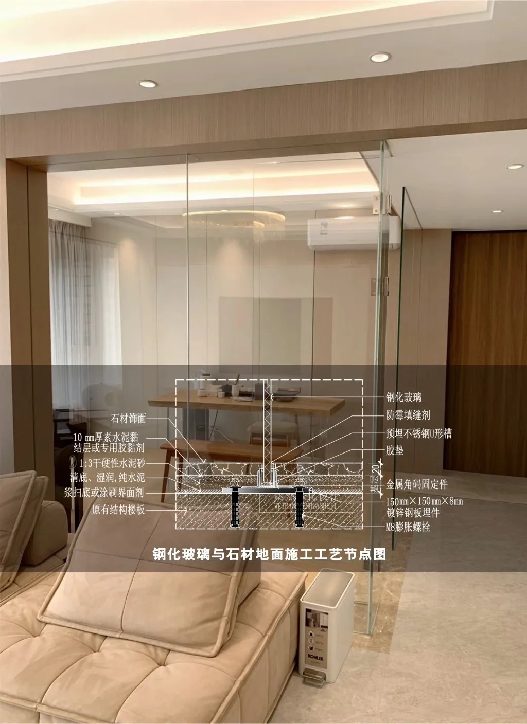 钢化玻璃隔墙与石材地面收口施工工艺节点图