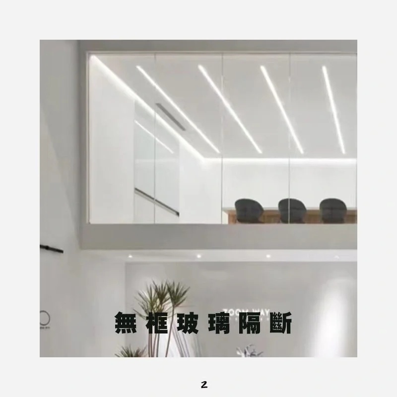办公室的那些隔断总结最常用的玻璃隔断高隔间玻璃无框玻璃隔断隔而不断的隔断形式(透明,间隙,可开合)矮柜隔断艺术玻璃隔断(渐变玻璃,玻璃砖,夹丝玻璃,玻璃等)镂空造型隔断(悬空,间隙,造型等)铝方通隔断镂空层板柜(铁艺,木质,亚克力柜)构件隔断可以开合的隔断形式折叠屏风折叠门窗帘轨道(百叶帘,遮光窗帘,水波帘等)轨道移门还有通电雾化玻璃