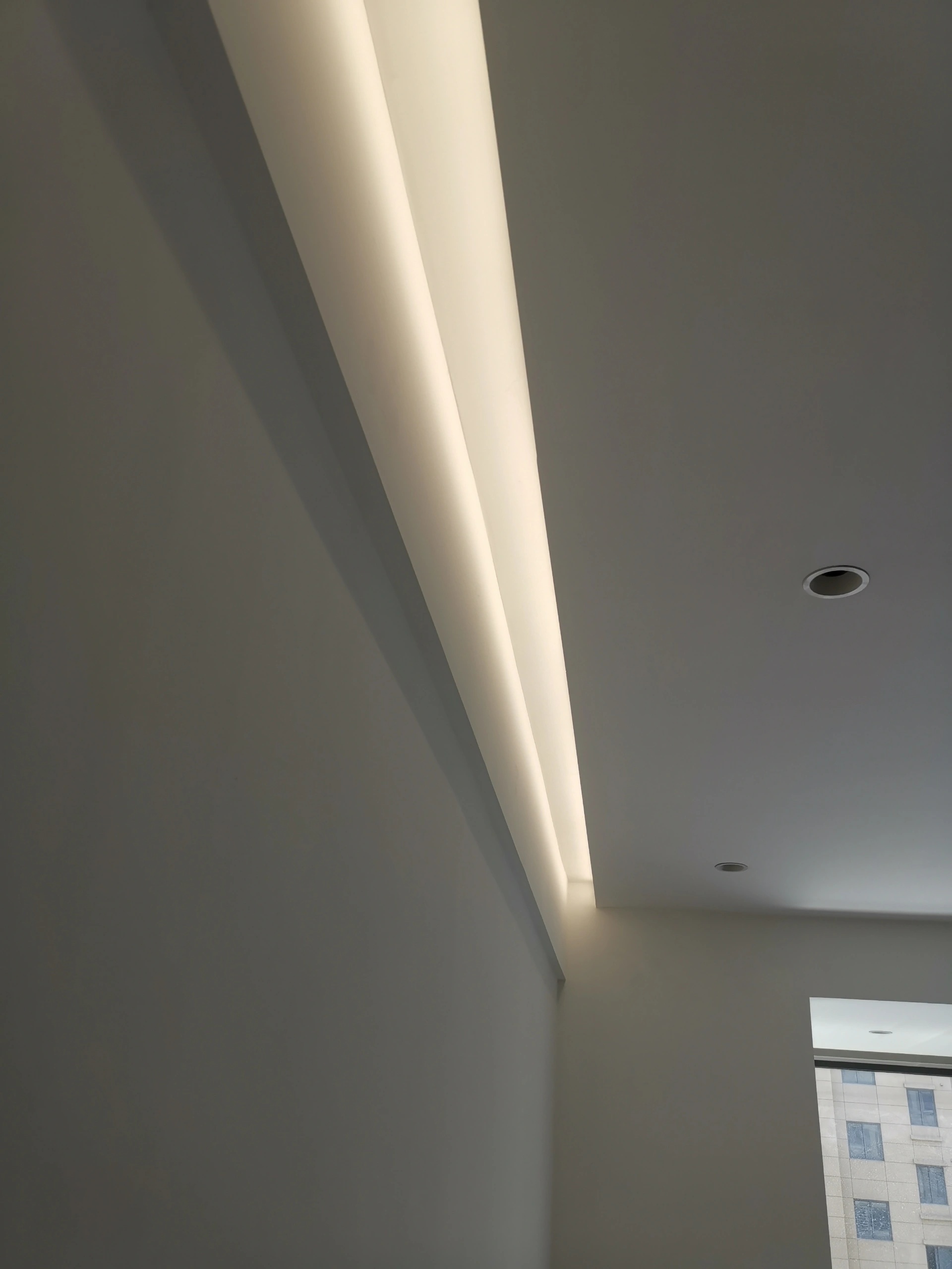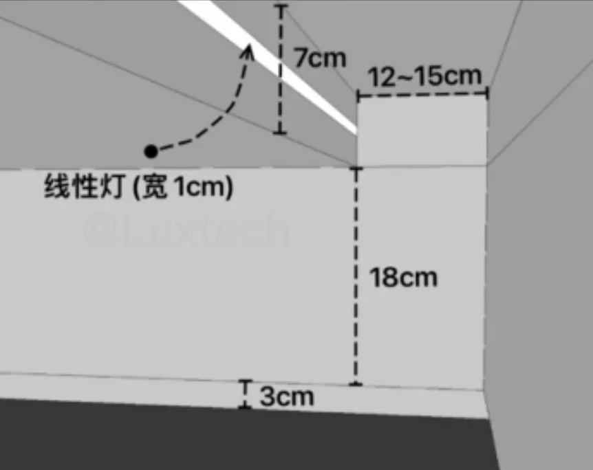 不藏灰的反光灯槽个人觉得反光灯槽的灯光效果,是优于明装线形灯和磁吸轨道灯的,能够更好诠释无主灯见光不见灯的精髓。这种做法,工艺更简单,还不藏灰