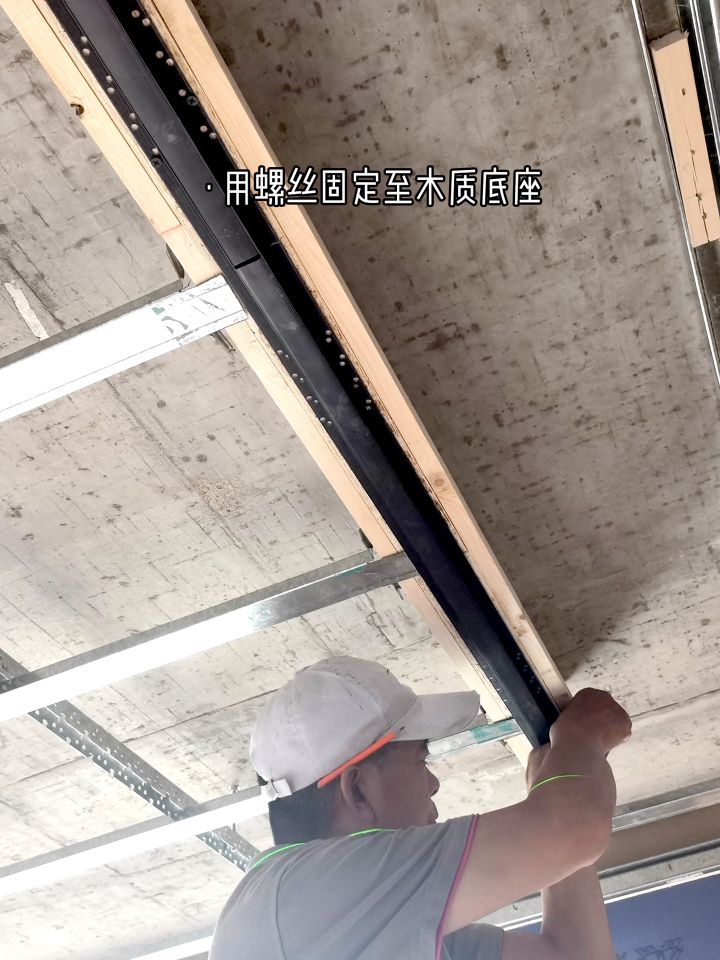 磁吸轨道灯必须在木工进场施工之前就买好放在现场,这点很重要。因为木工会根据灯底座的尺寸,现场制作木质框架,作为灯的安装基础。