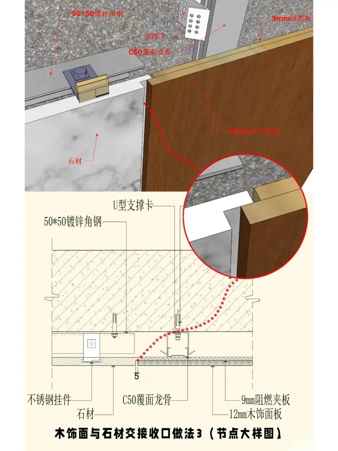 石材与木饰面收口
