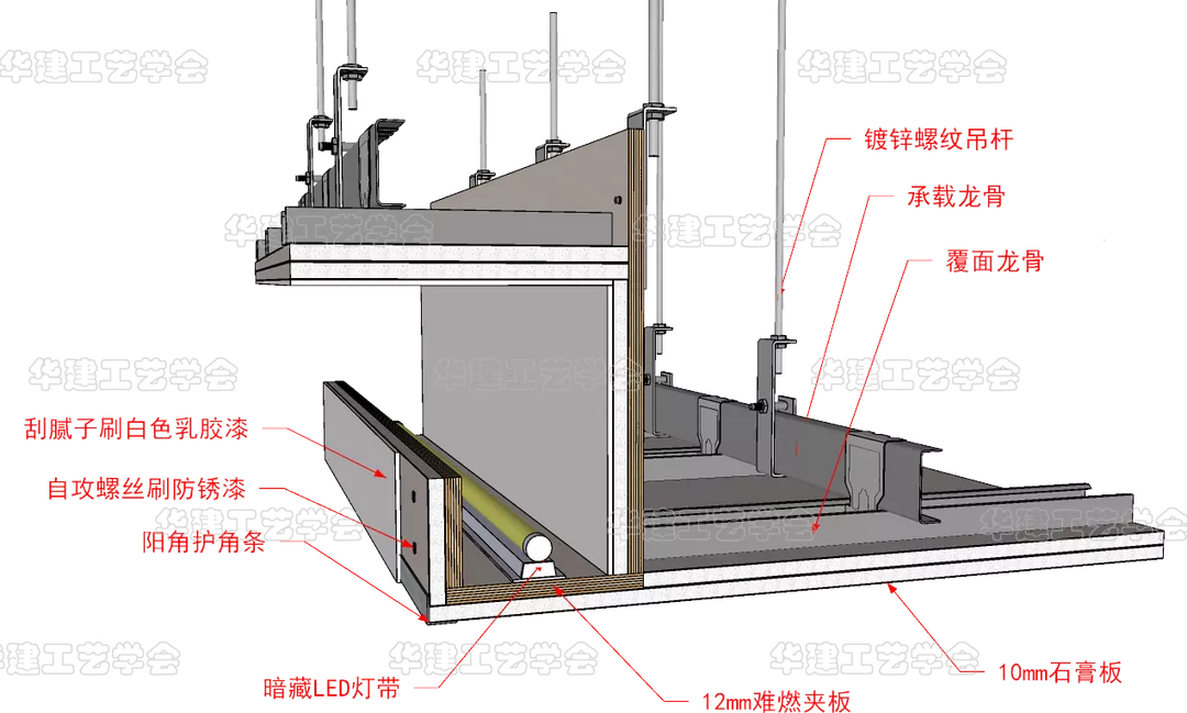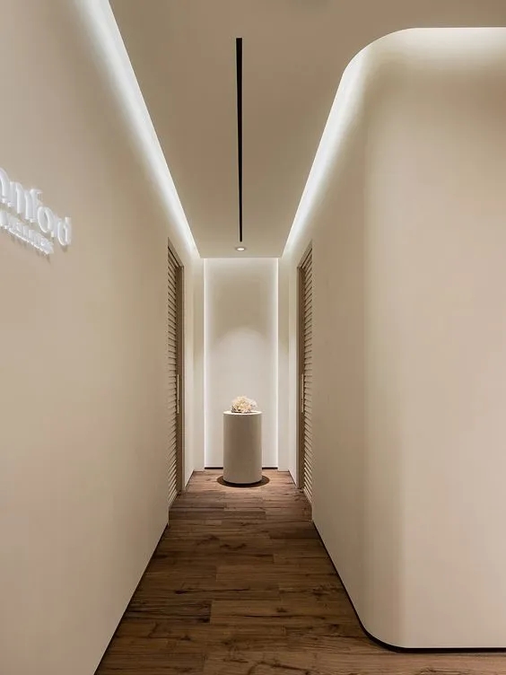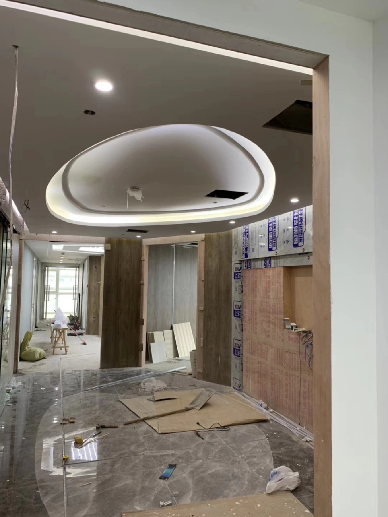 悬浮天花吊顶悬浮天花吊灯是指在中间平顶,周围向内凹陷,在凹陷处做藏灯,达到悬浮的效果。效果:在凹陷处暗藏线性灯,视觉上提升层高的效果。通用施工结构:轻钢龙骨结构+难燃夹板+石膏板+乳胶漆。