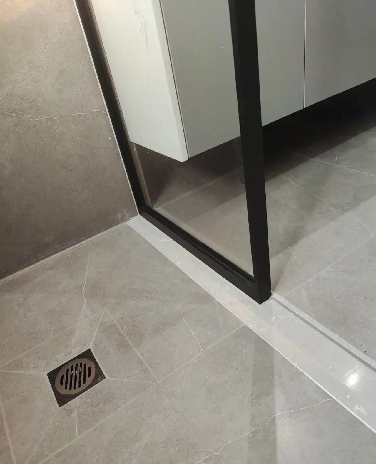 极简淋浴间极简淋浴间干湿分离,边线处理工艺节点!石材挡水线定制成型安装,避免侧瓷砖过小不好开料粘贴,粘贴后阳角位容易崩角等现象。现采用石材一体成型,减少渗水点,阳角磨圆边处理,安装施工简便,值得学习分享。