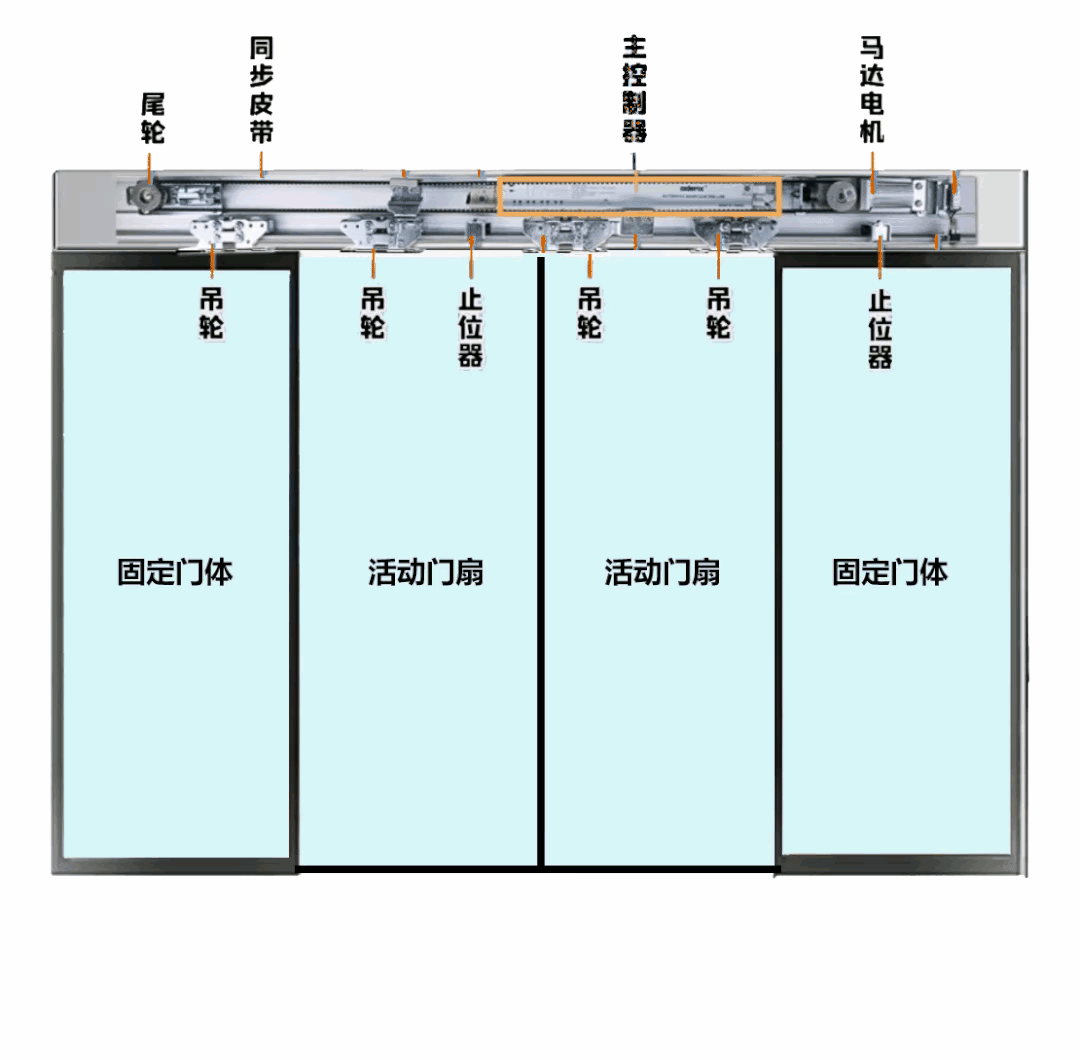 平时最常见、常用的电动移门是标准的双开电动感应式玻璃平移门