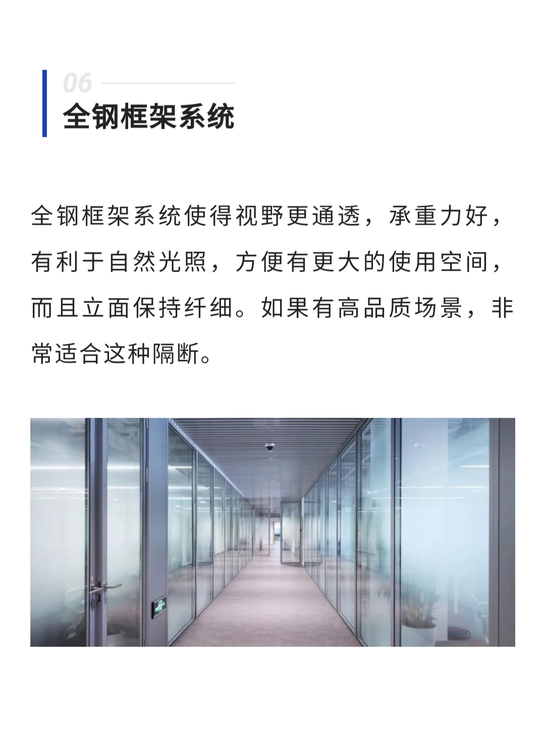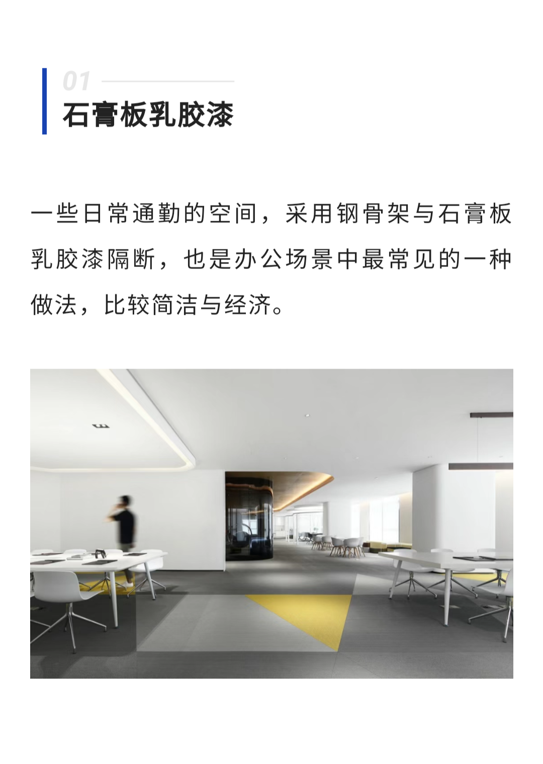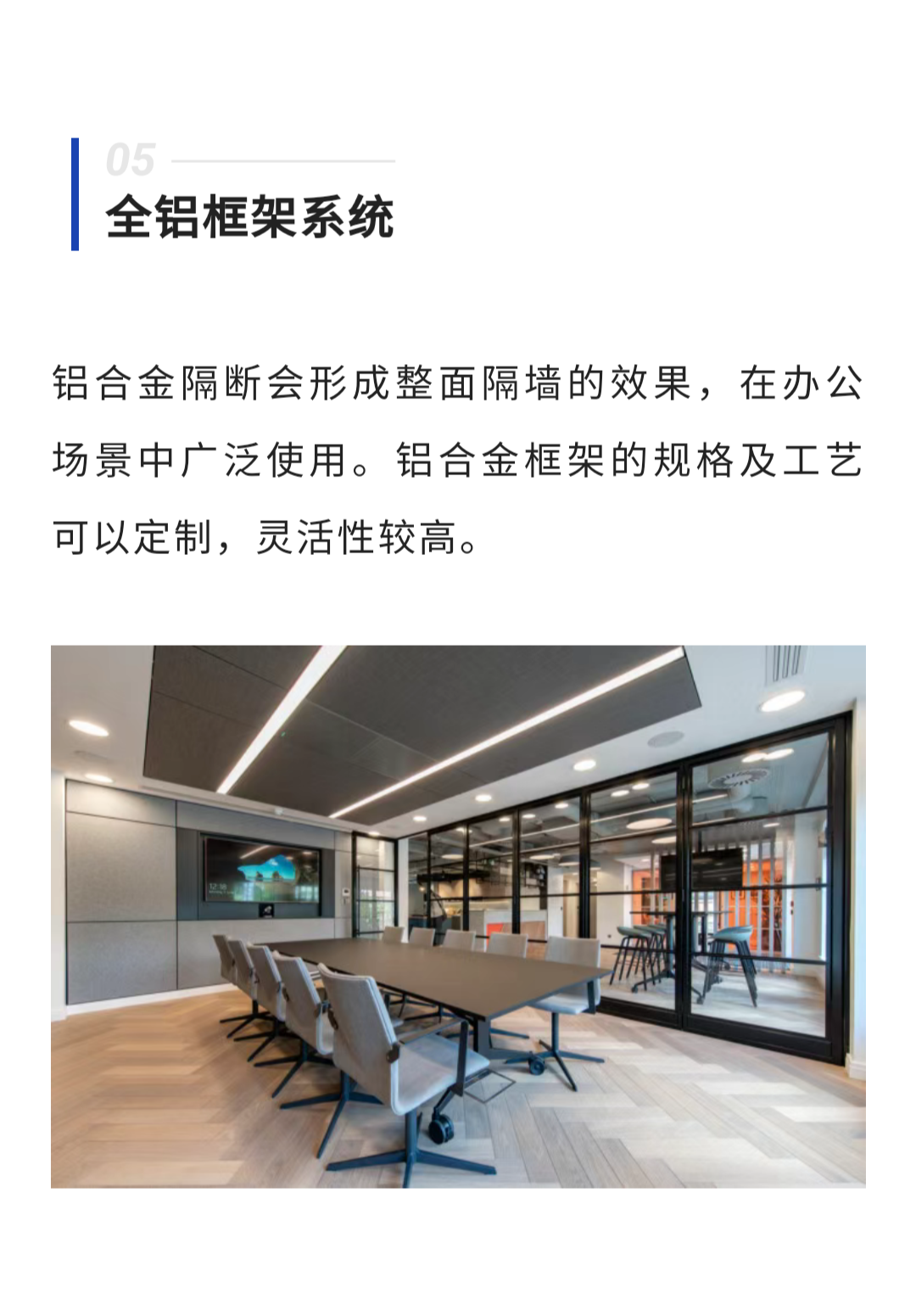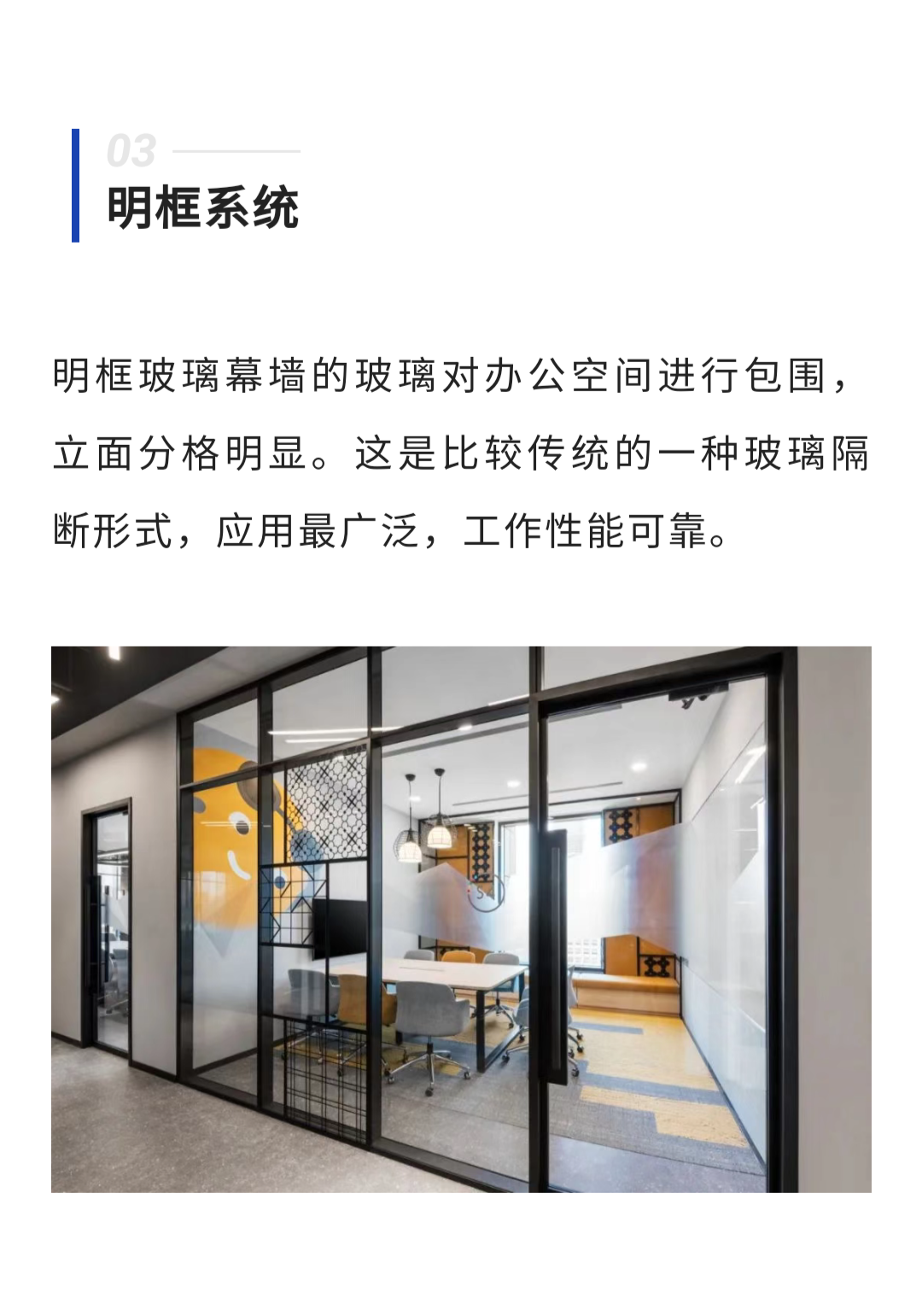 通高隔断,大致可以分为两类,一类是通高的玻璃隔断,一类是双面板材系统。我们分别看一下。