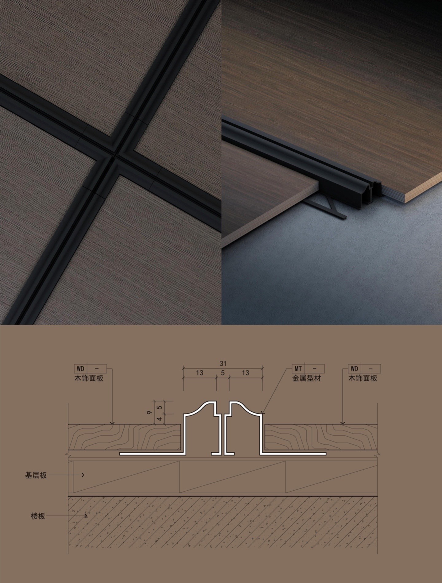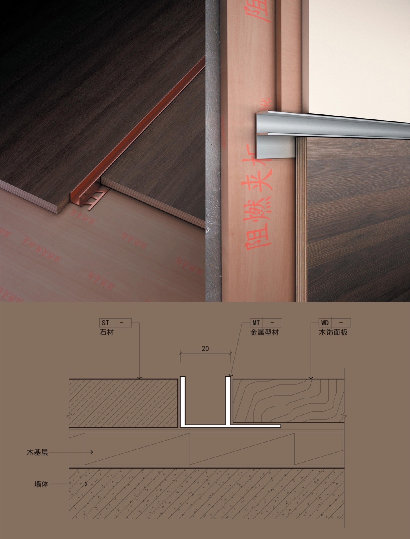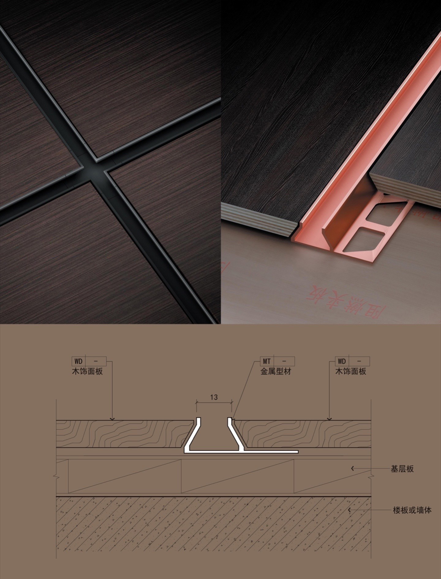 六种木饰面拼接收口。不同材质拼接也可以参考