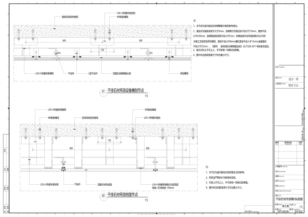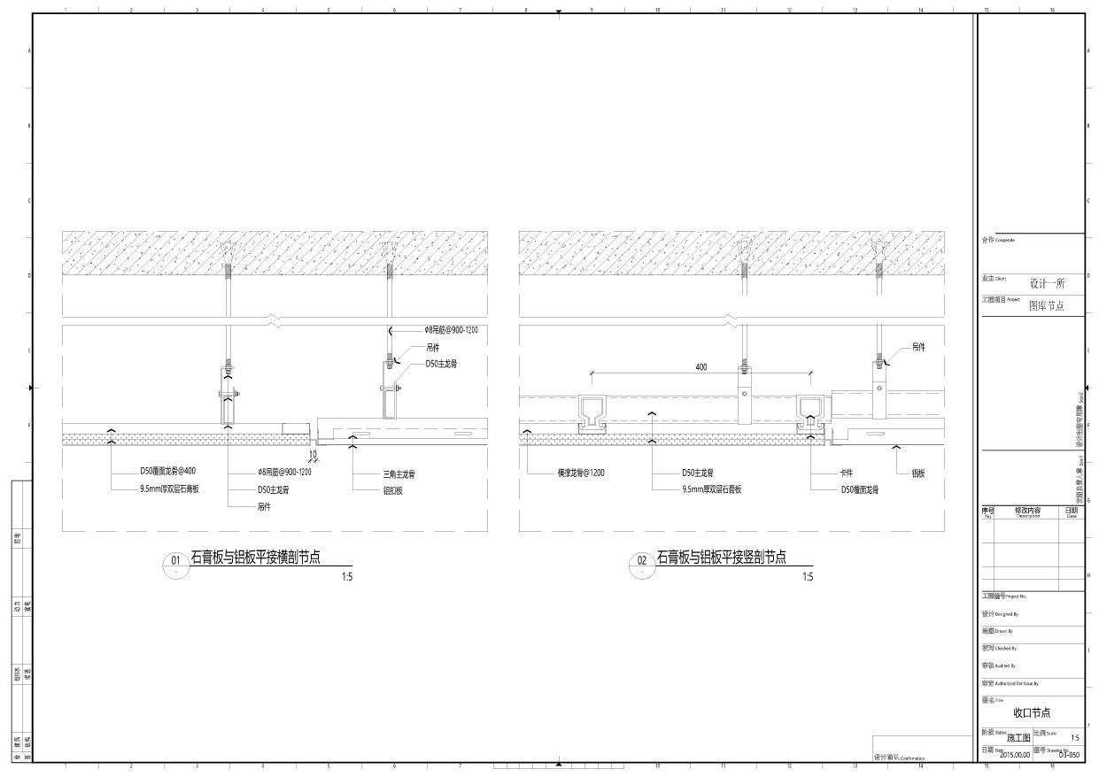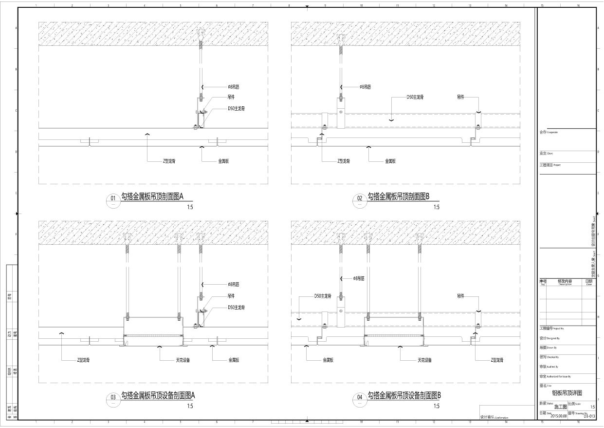 本次节点图包括石膏板吊顶,矿棉板吊顶,金属板吊顶,干挂石材吊顶,木饰面,GRG吊顶,玻璃吊顶,软膜吊顶,收口做法等