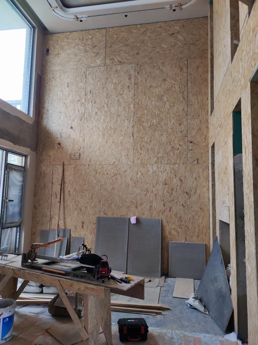 贴砖时准备好玻璃安装要用的型材如 U型/F型五金玻璃卡槽,用于地面墙面固定玻璃