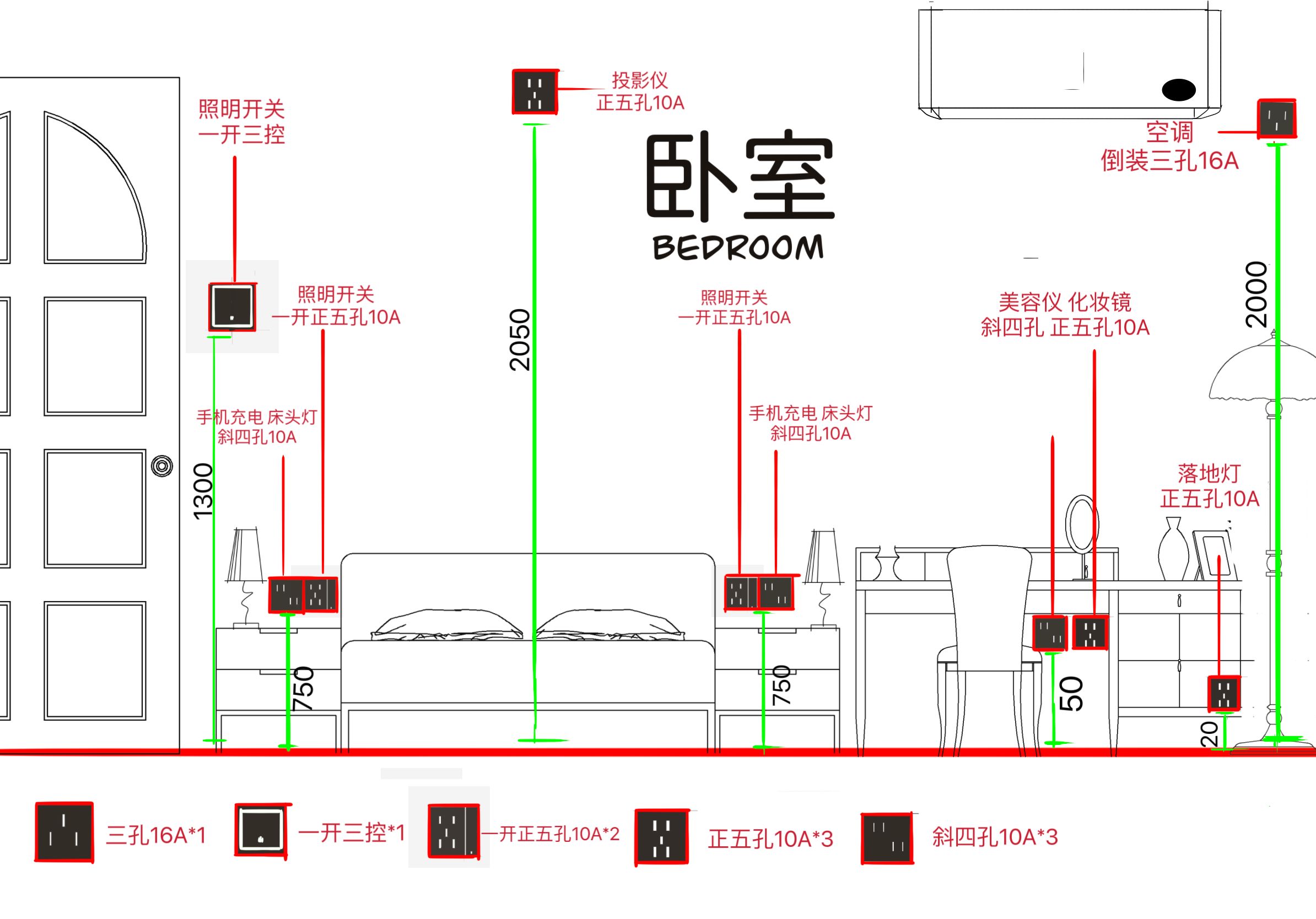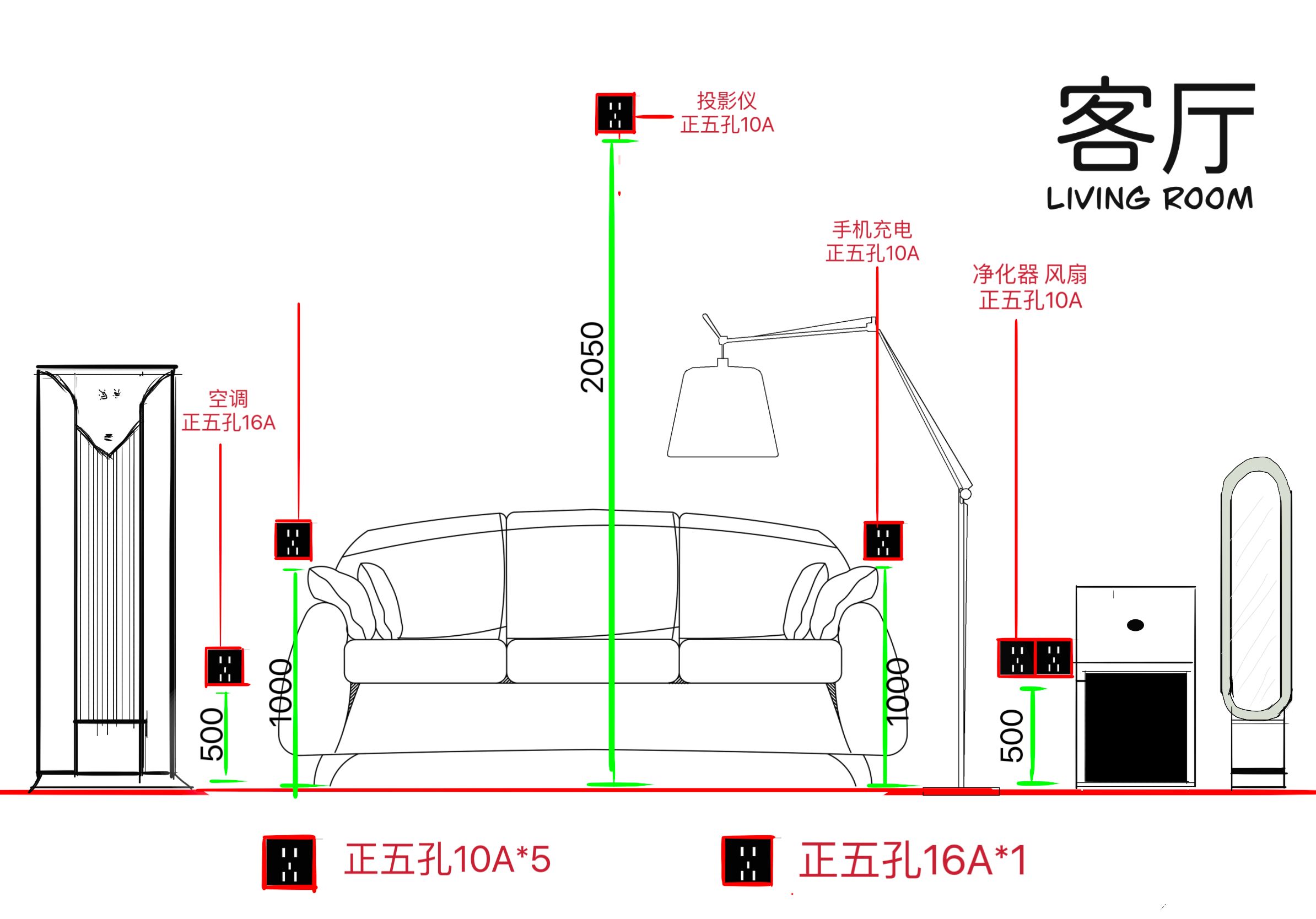 三居室插座布置图