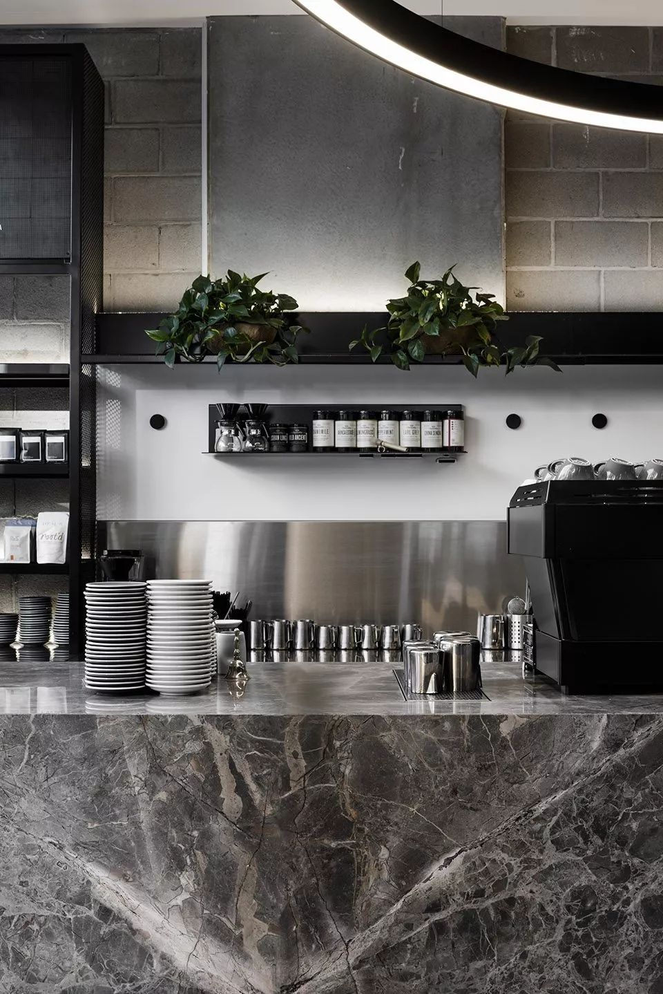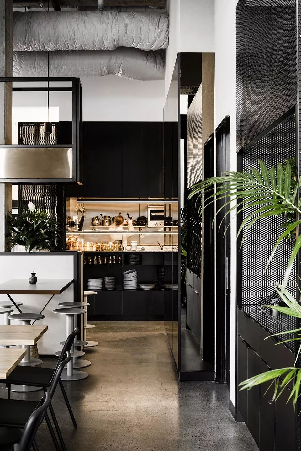 希望创造有别于「正襟危坐」的法餐氛围,而是可以悠闲入座,点缀笑声与刀割碰撞声的自在环境,因此刻意以裸露管线,粗犷水泥作为设计主轴,一来创造悠闲气息,二方面借此衬托法式餐点的精致优雅。