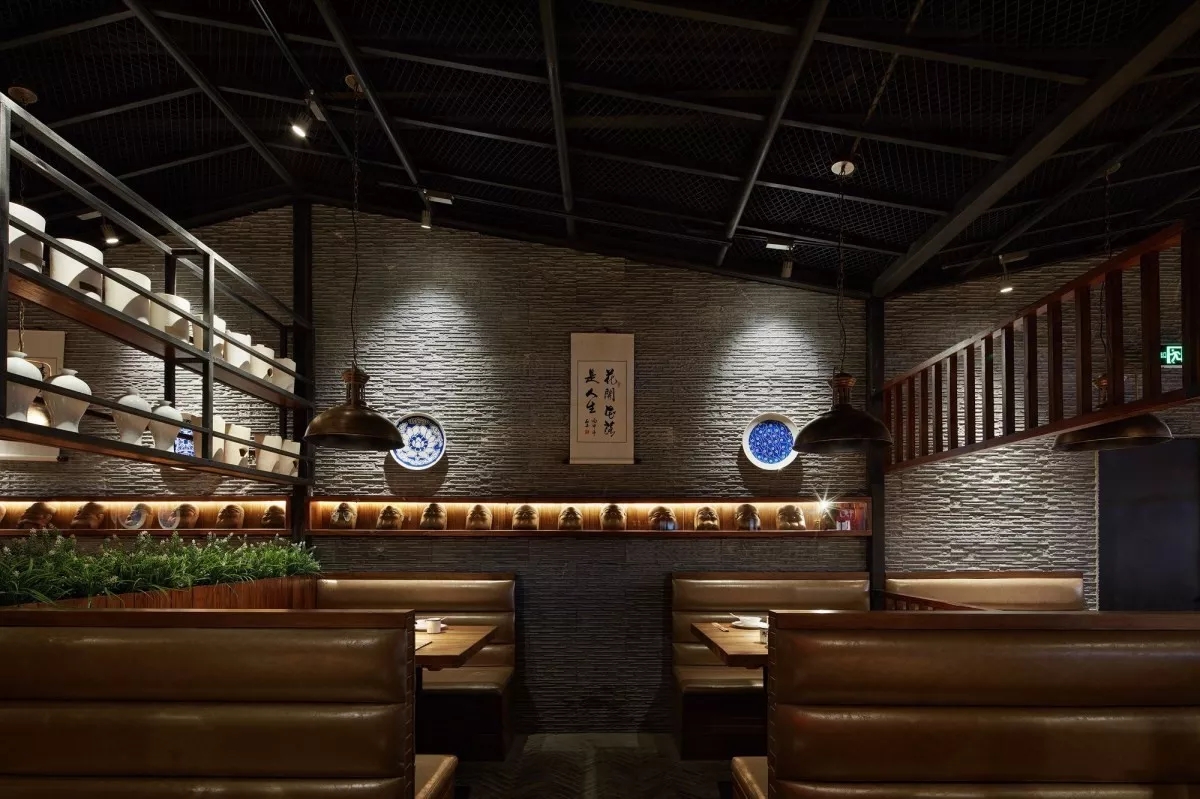 设计说明:空间用原木饰面板装饰辅以大量的绿植贯穿于空间,星星点点的灯具从顶上悬垂而下,美味可口的菜品在灯光下交相辉映。