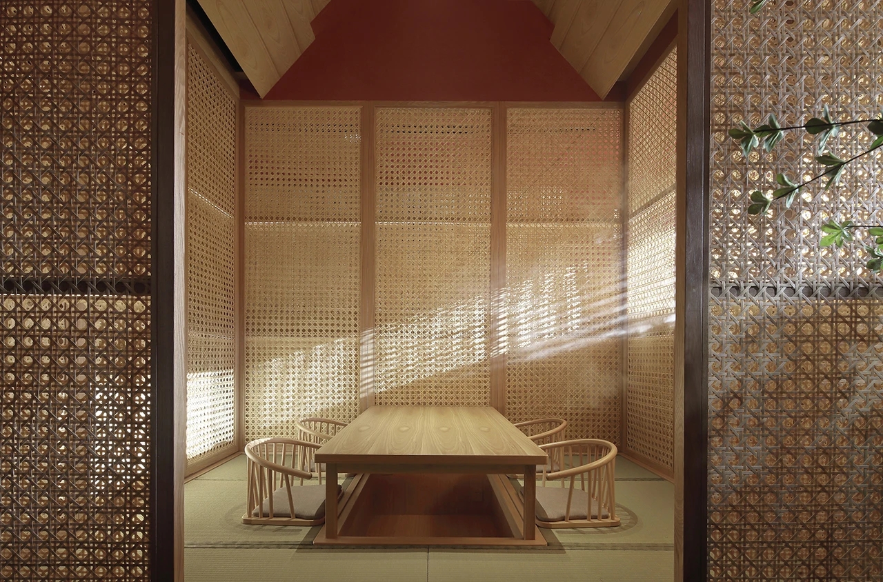 “中餐是火,日料是水,道家文化,万物归一,越简越好。” 单一木材所带来的宁静与庄严,搭配鮨然精心制作的料理,为客人打造身心一致的用餐体验。